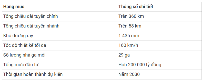 Tại khu vực Hà Nội, tuyến đi qua các khu vực Bắc Hồng, Yên Thường và vượt sông Đuống đến Kim Sơn. Sau đó, công trình chạy dọc theo đường ĐT385 qua Lương Tài (Bắc Ninh), hướng về Bình Giang, Hải Dương Nam (Hải Dương) và kết thúc tại cụm ga Nam Hải Phòng cùng các nhánh rẽ cảng biển. Tổng cộng sẽ có 29 nhà ga được xây dựng mới, trong đó có 24 ga trên tuyến chính và 4 ga trên các tuyến nhánh.