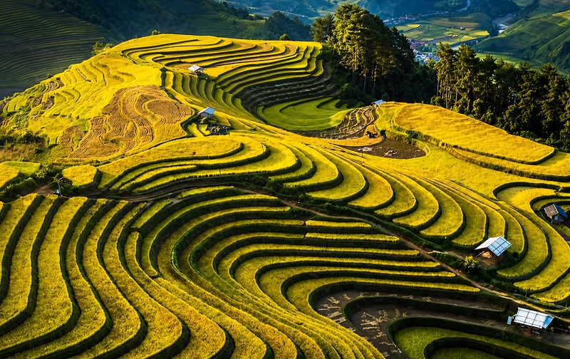 Điểm nhấn đặc biệt của Lào Cai là hai hệ thống ruộng bậc thang nổi tiếng bậc nhất Việt Nam: thung lũng Mường Hoa (Sa Pa) – từng được vinh danh trong top 7 ruộng bậc thang đẹp nhất châu Á và thế giới và danh thắng quốc gia đặc biệt Mù Cang Chải – thuộc top 12 ruộng bậc thang đẹp nhất thế giới. Không chỉ là cảnh quan, đây còn là kết tinh của tri thức canh tác hàng trăm năm của đồng bào vùng cao, tạo nên “vành đai di sản” độc đáo từ Fansipan đến hồ Thác Bà.