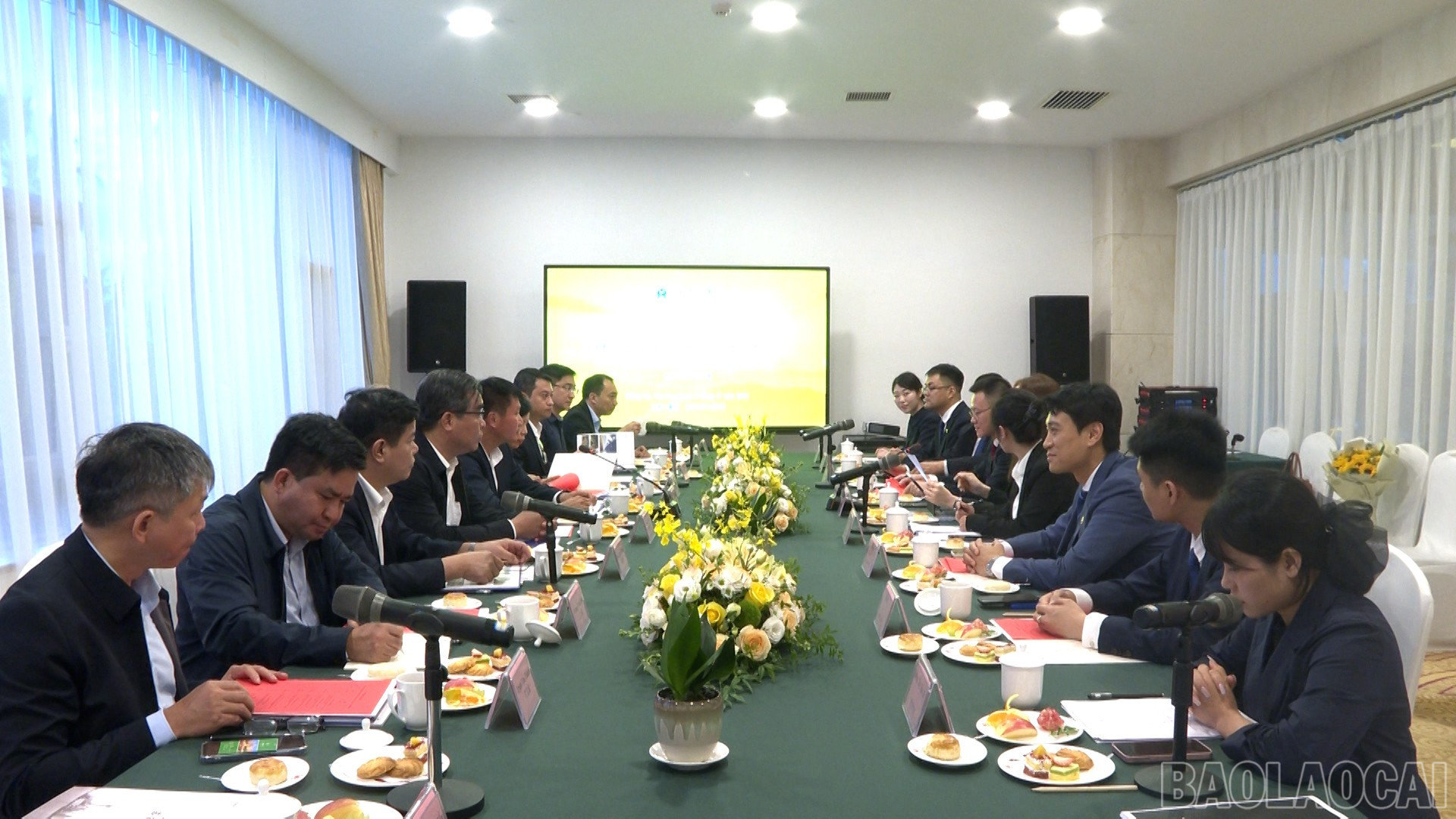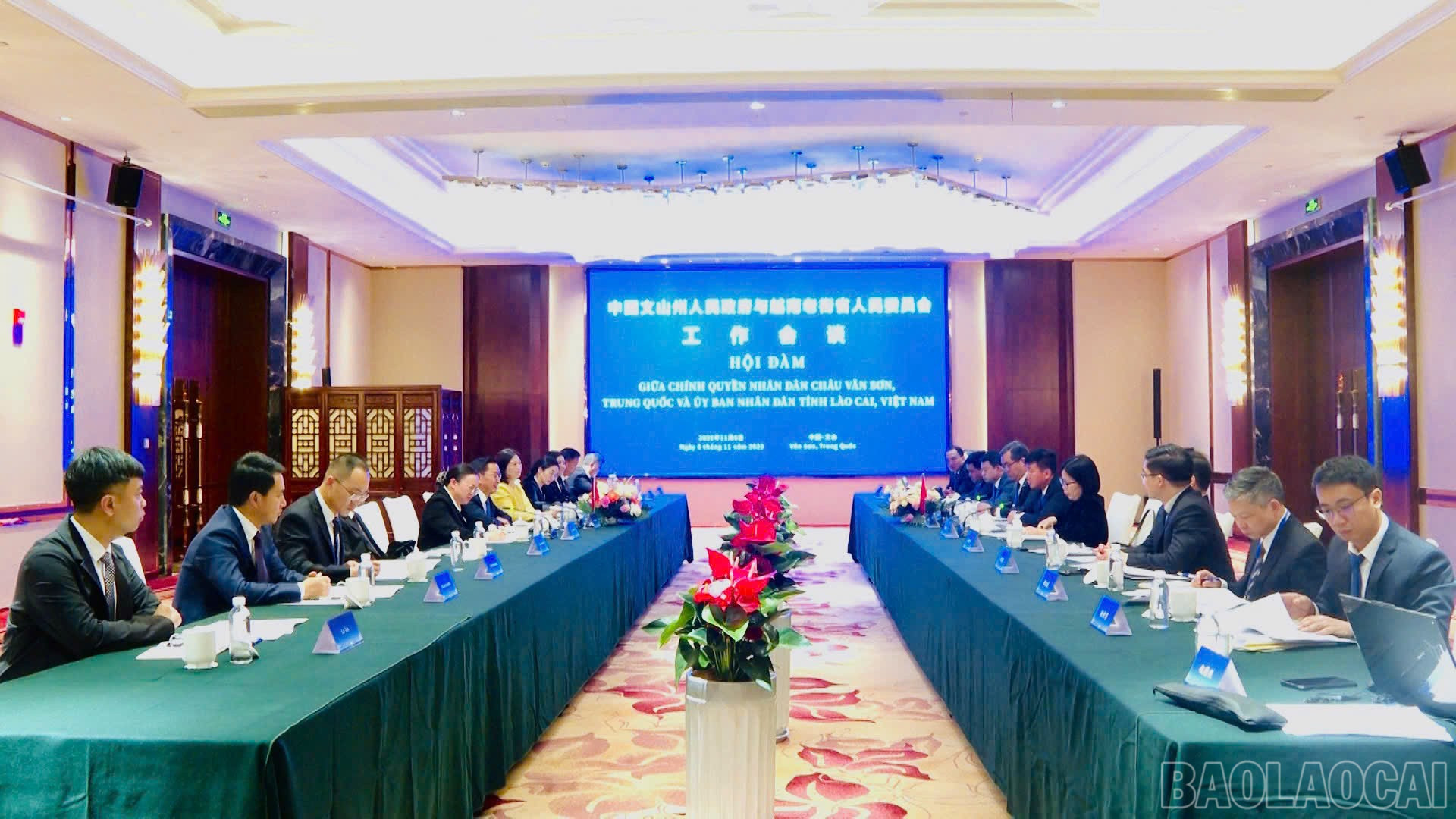 Chiều 06/11, trong chuyến thăm và làm việc với châu Văn Sơn, tham dự Lễ hội Tam thất Văn Sơn lần thứ 11 và Tuần lễ giao lưu hợp tác Trung - Việt (Văn Sơn) 2025, đoàn công tác tỉnh Lào Cai do đồng chí Trần Huy Tuấn - Phó Bí thư Tỉnh ủy, Chủ tịch UBND tỉnh Lào Cai làm trưởng đoàn đã hội đàm với lãnh đạo Chính quyền nhân dân châu Văn Sơn.
