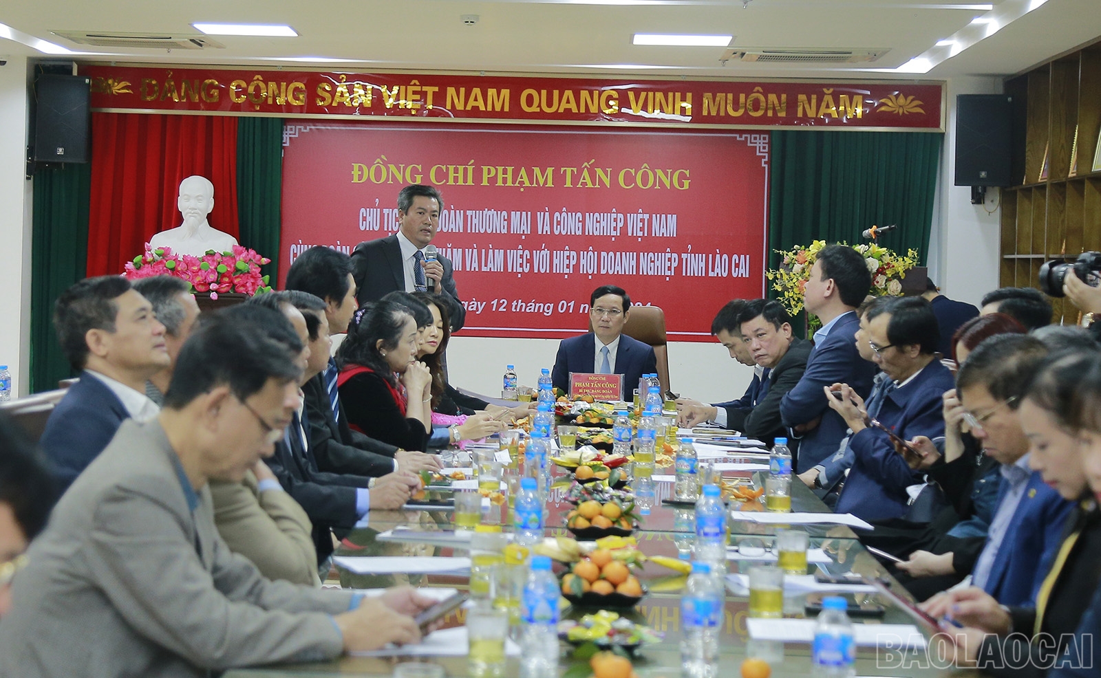 Sáng 12/1, trong chuyến công tác và làm việc tại Lào Cai, Đoàn Công tác của Liên đoàn Thương mại và Công nghiệp Việt Nam (VCCI) do đồng chí Phạm Tấn Công, Bí thư Đảng đoàn, Chủ tịch VCCI đã khảo sát Khu Kinh tế cửa khẩu Lào Cai và khảo sát địa điểm dự kiến lập chi nhánh/văn phòng đại diện VCCI.