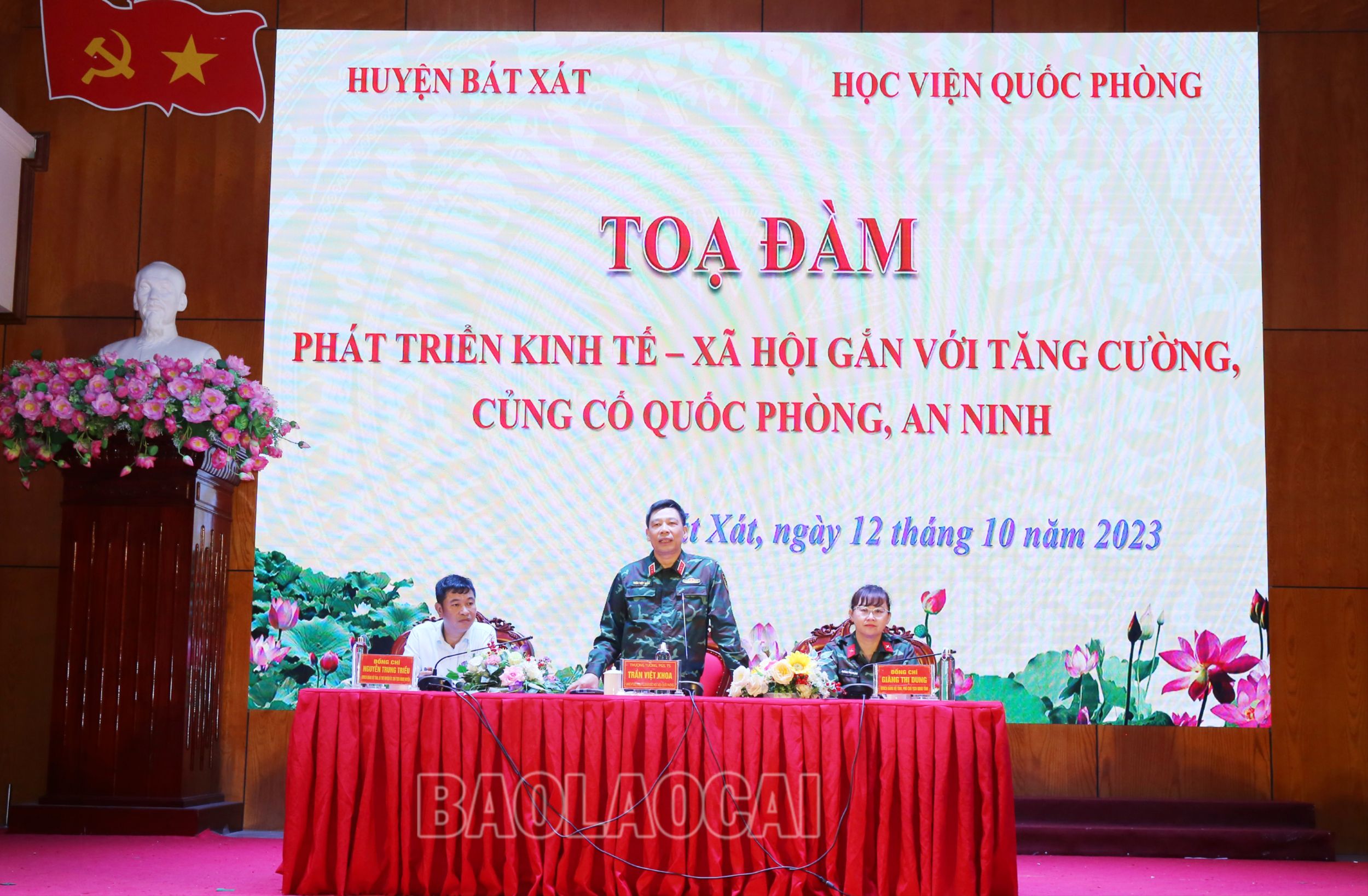 Chiều 12/10, huyện Bát Xát và Đoàn công tác của Học viện Quốc phòng do Thượng tướng Trần Việt Khoa, Ủy viên Ban Chấp hành Trung ương Đảng, Giám đốc Học viện làm Trưởng đoàn đã tổ chức tọa đàm phát triển kinh tế - xã hội gắn với tăng cường, củng cố quốc phòng, an ninh.