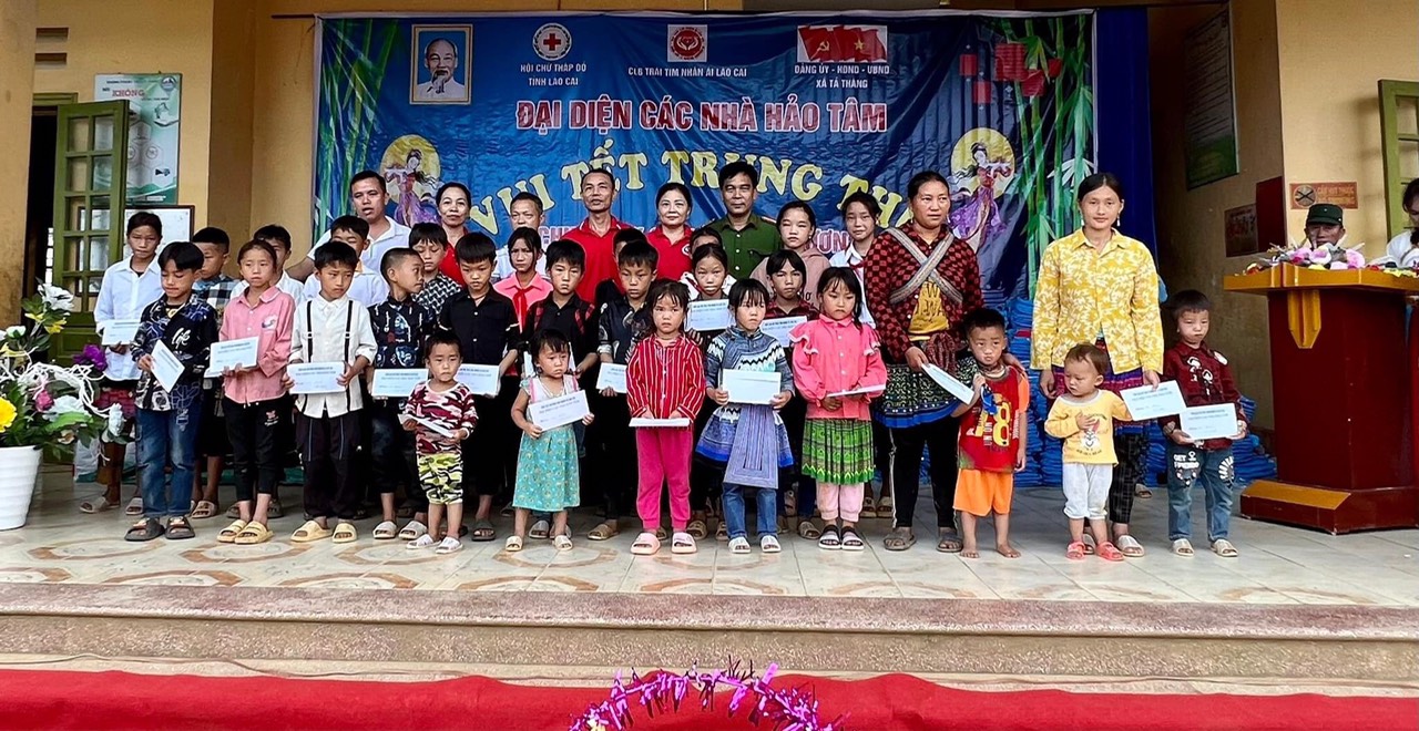 Chiều 22/9/2023, Hội Chữ thập đỏ tỉnh phối hợp với Câu lạc bộ Trái tim Nhân ái và các nhà hảo tâm thực hiện chương trình “Vui Tết Trung thu” cho các em học sinh tại xã Tả Thàng, huyện Mường Khương, tỉnh Lào Cai.