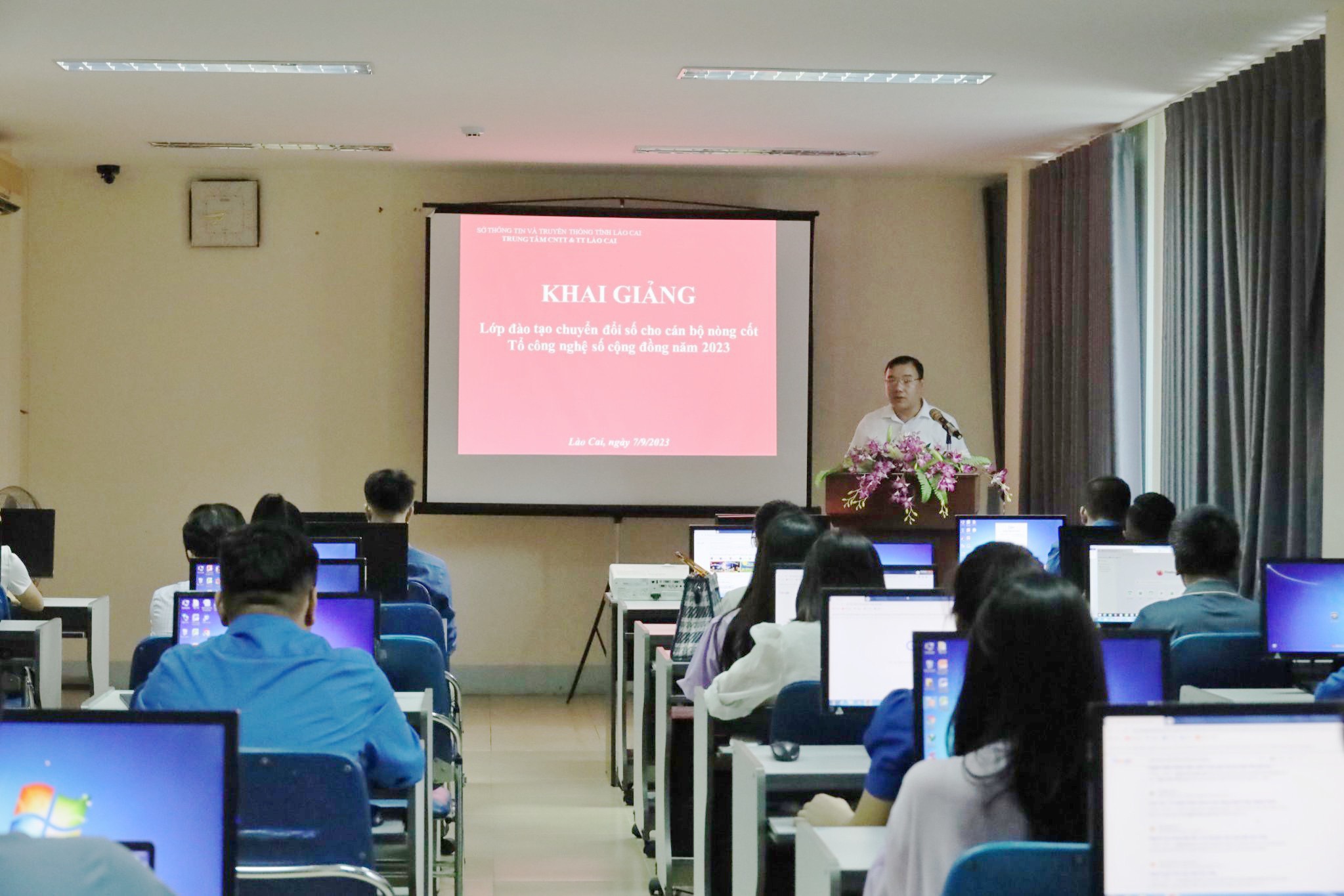 Sáng 07/9, Trung tâm Công nghệ thông tin và truyền thông tỉnh Lào Cai tổ chức khai giảng lớp đào tạo chuyển đổi số cho 33 cán bộ nòng cốt Tổ Công nghệ số cộng đồng tại địa phương.