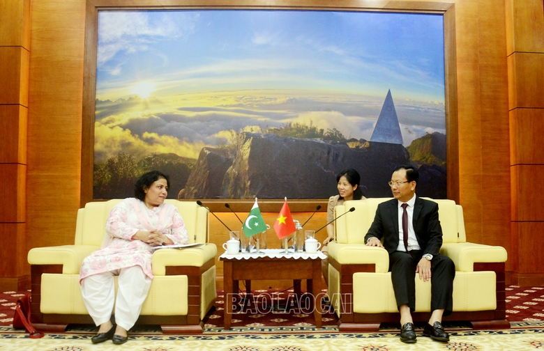 Sáng 11/7, đồng chí Hoàng Quốc Khánh, Phó Chủ tịch Thường trực UBND tỉnh đã tiếp xã giao Đoàn công tác của Đại sứ Cộng hòa Hồi giáo Pakistan, do bà Samina Mehtab, Đại sứ đặc mệnh toàn quyền Cộng hòa Hồi giáo Pakistan tại Việt Nam làm Trưởng đoàn đến thăm tỉnh Lào Cai.