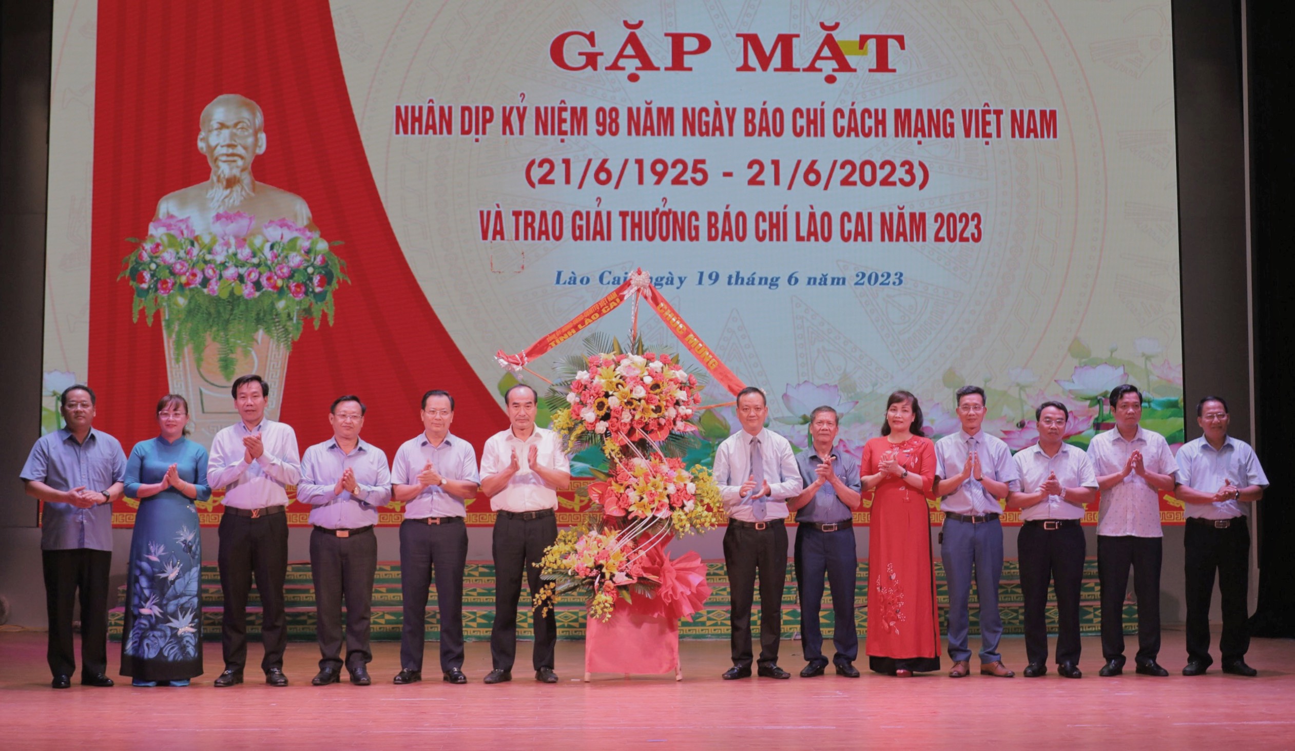 Chiều 19/6, Tỉnh ủy, Hội đồng nhân dân, Ủy ban nhân dân, Ủy ban Mặt trận Tổ quốc Việt Nam tỉnh Lào Cai tổ chức gặp mặt đại biểu các cơ quan báo chí nhân dịp kỷ niệm 98 năm Ngày Báo chí cách mạng Việt Nam (21/6/1925-21/6/2023) và trao giải thưởng báo chí Lào Cai năm 2023.