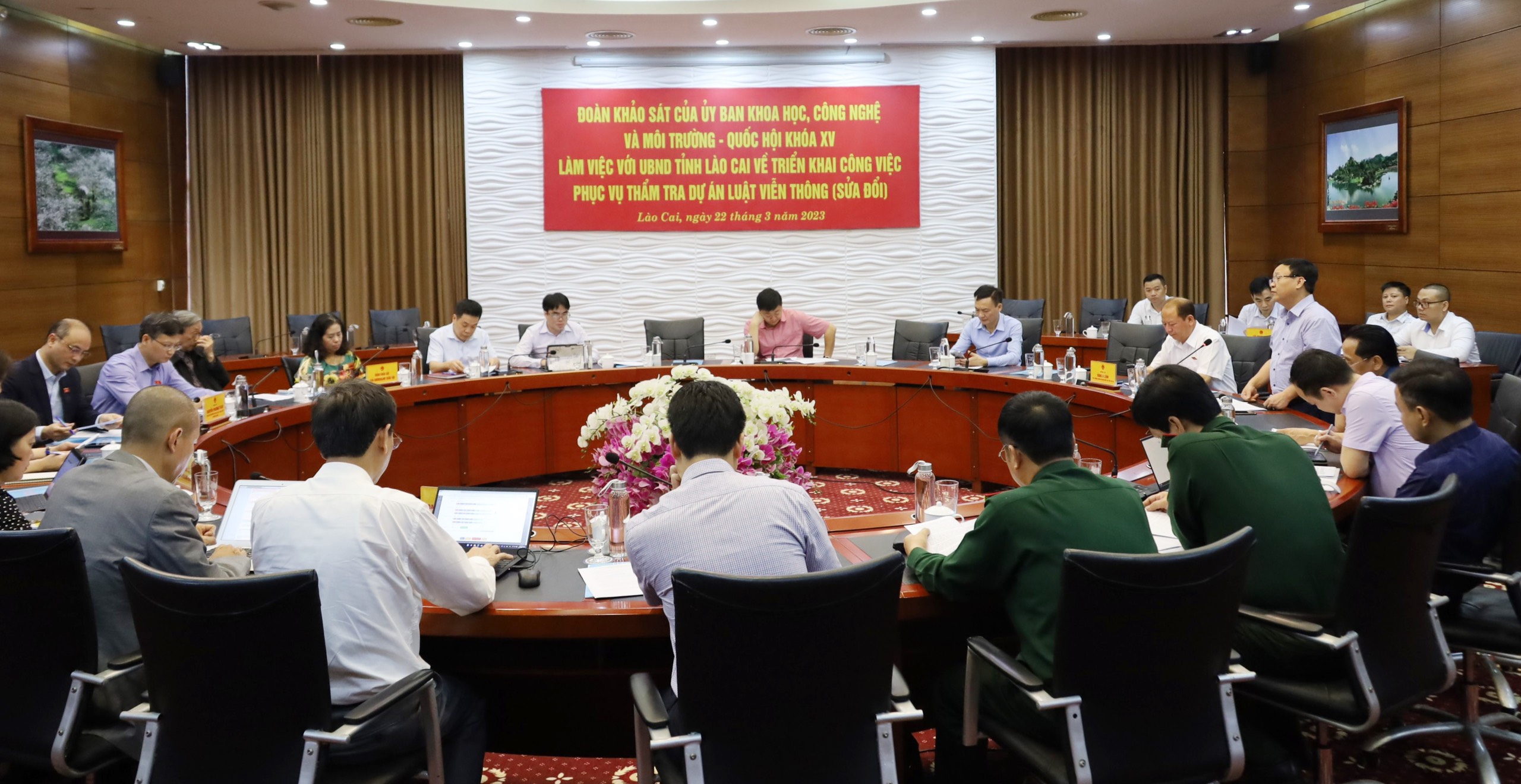 Sáng 22/3, Đoàn công tác Ủy ban Khoa học, Công nghệ và Môi trường của Quốc hội khóa XV do đồng chí Nguyễn Phương Tuấn - Phó Chủ nhiệm Ủy ban Khoa học, Công nghệ và Môi trường làm Trưởng đoàn đã có buổi làm việc với UBND tỉnh Lào Cai để phục vụ thẩm tra dự án Luật Viễn thông (sửa đổi).