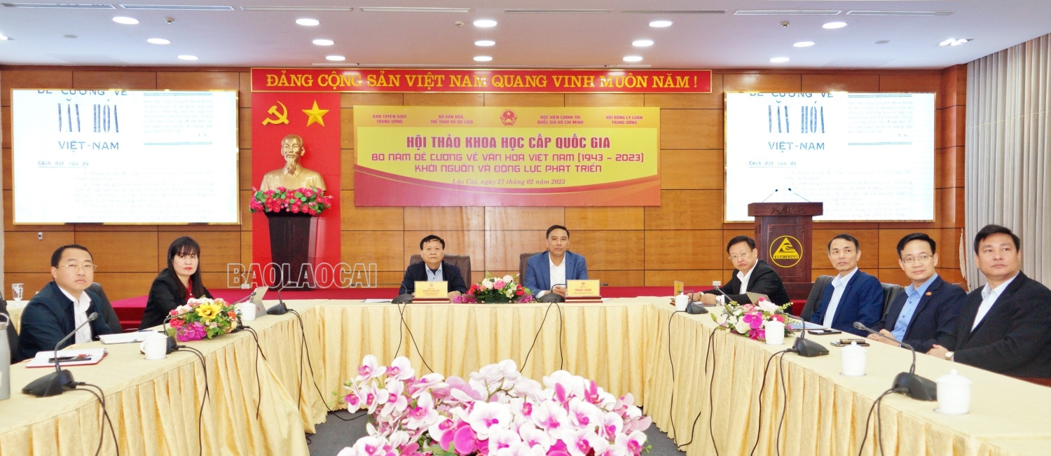 Sáng 27/2, Hội thảo khoa học cấp Quốc gia với chủ đề “80 năm Đề cương về văn hóa Việt Nam (1943 - 2023) – khởi nguồn và động lực phát triển" do Ban Tuyên giáo Trung ương, Hội đồng Lý luận Trung ương, Học viện Chính trị quốc gia Hồ Chí Minh và Bộ Văn hóa - Thể thao và Du lịch phối hợp tổ chức tại Trung tâm Hội nghị quốc tế Hà Nội.