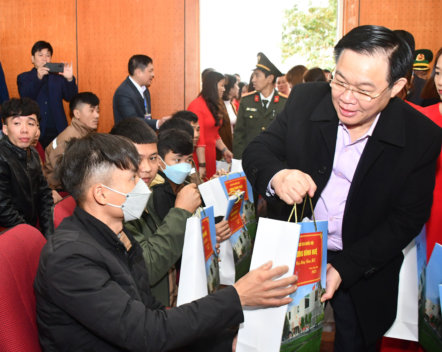 Sáng 16/1, tiếp tục chương trình công tác, Chủ tịch Quốc hội Vương Đình Huệ và Đoàn công tác của Quốc hội đến tặng quà Tết các đồn biên phòng: Bát Xát, Trịnh Tường, A Mú Sung, Y Tý và Đoàn Kinh tế - Quốc phòng 345; trao tặng 250 phần quà Tết cho gia đình chính sách, hộ nghèo, đồng bào dân tộc thiểu số huyện Bát Xát và công nhân Công ty TNHH Một thành viên Apatit Việt Nam, Chi nhánh Luyện đồng Lào Cai.