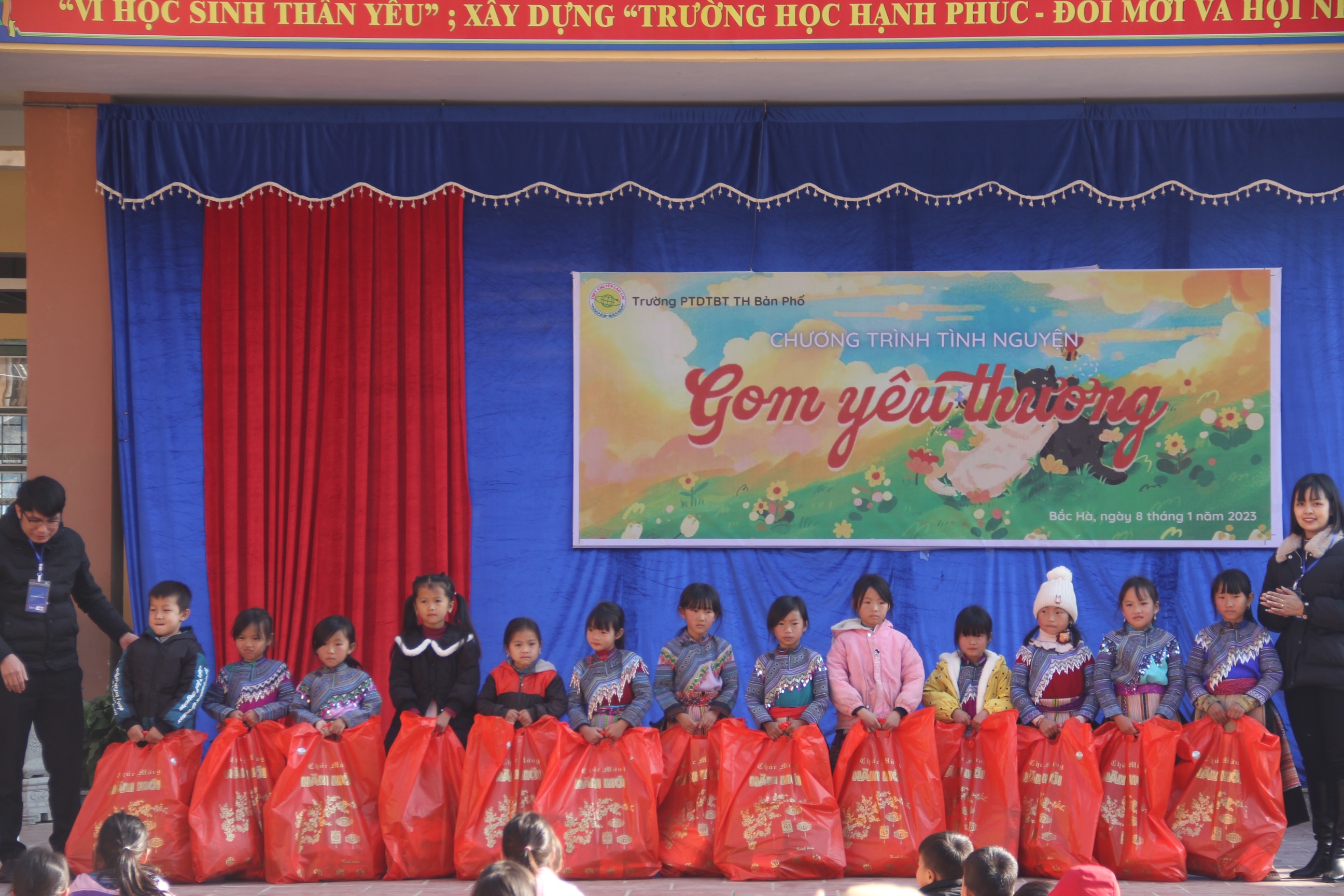 Trong những ngày đầu năm 2023, học sinh trường THPT Chuyên Lào Cai đã đem đến một mùa xuân ấm áp cho các em nhỏ ở trường THCS Thượng Hà - Bảo Yên và trường Phổ thông dân tộc bán trú Tiểu học Bản Phố – Bắc Hà qua chương trình Tết bên em và Gom yêu thương đầy ý nghĩa.