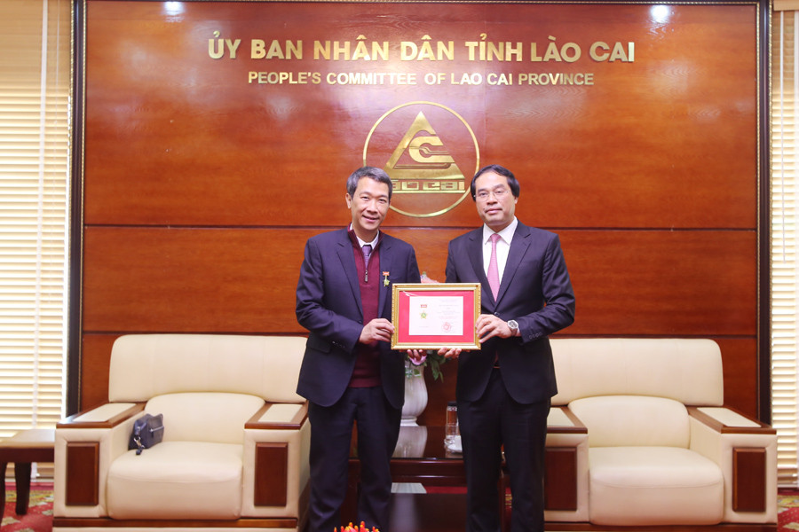 Sáng 14/12/2022, UBND tỉnh Lào Cai đã tổ chức Lễ trao tặng Huy hiệu “Vì sự nghiệp xây dựng và phát triển tỉnh Lào Cai” cho đồng chí Nguyễn Trung Hiếu - Tổng lãnh sự, Tổng lãnh sự quán Việt Nam tại Côn Minh, Vân Nam, Trung Quốc.