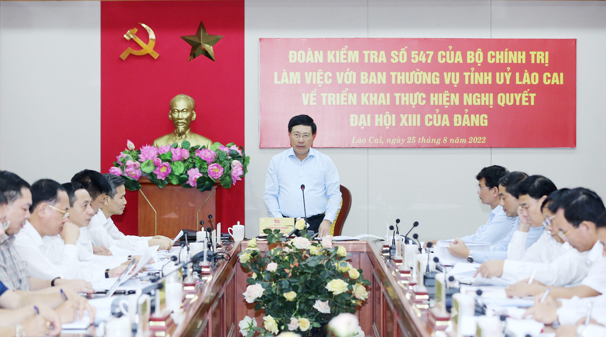 Sáng 25/8, tại trụ sở Tỉnh ủy, Đoàn công tác Trung ương do đồng chí Phạm Bình Minh, Ủy viên Bộ Chính trị, Phó Thủ tướng Thường trực Chính phủ làm Trưởng đoàn đã có buổi làm việc với Ban Thường vụ Tỉnh ủy về triển khai thực hiện Nghị quyết Đại hội lần thứ XIII của Đảng.