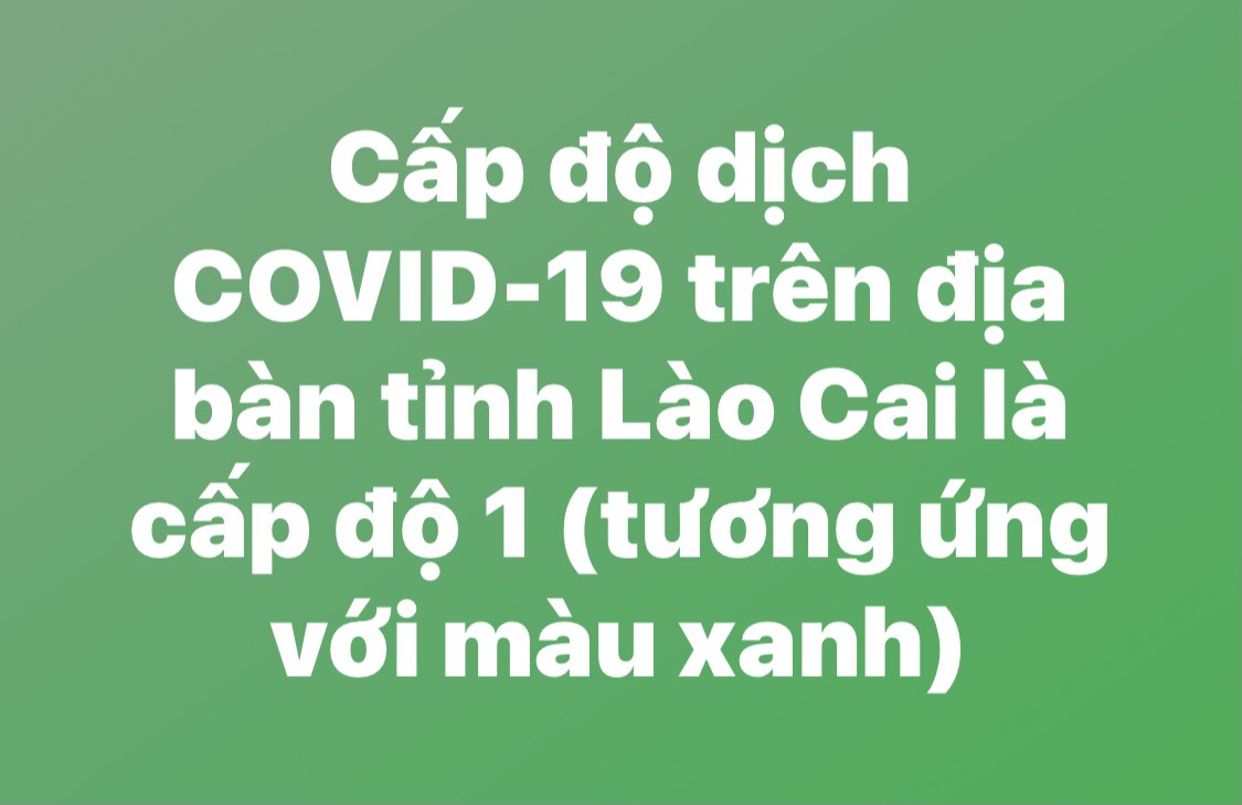 Bản tin Covid-19 ngày 05/12/2021 của Tiểu ban Truyền thông – Trung tâm Chỉ huy phòng, chống dịch Covid-19 tỉnh Lào Cai cho biết, Cấp độ dịch Covid-19 trên địa bàn tỉnh Lào Cai hiện nay là Câp độ 1 (Tương ứng với màu xanh).