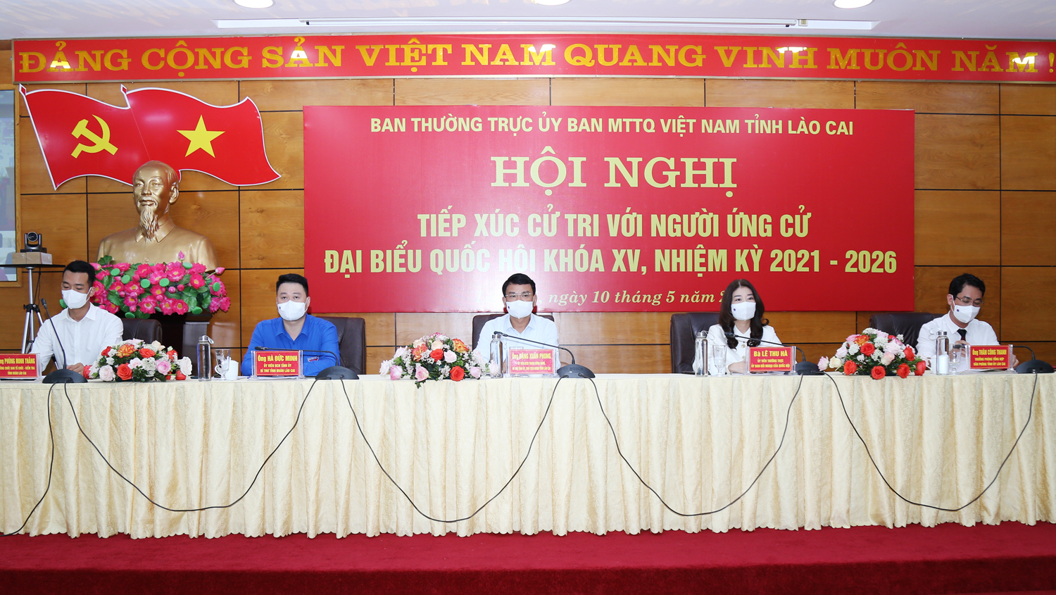 Sáng 10/5, tại phòng họp Ban Chấp hành Đảng bộ tỉnh (trụ sở Tỉnh uỷ) và Trung tâm hội nghị tỉnh, 10 ứng cử viên thuộc 2 đơn vị bầu cử đại biểu Quốc hội khóa XV, nhiệm kỳ 2021 - 2026 tại tỉnh Lào Cai đã tiếp xúc cử tri vận động bầu cử. Từ hai điểm tiếp xúc cử tri đã được kết nối trực tuyến tới 73 điểm cầu ở thành phố, thị xã, các huyện và các cụm xã với gần 2.800 cử tri tham gia.