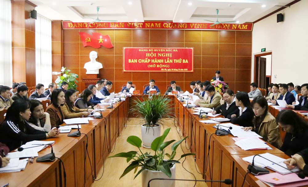 Chiều 20/10, Ban Chấp hành Đảng bộ huyện Bắc Hà tổ chức Hội nghị lần thứ Ba (mở rộng) để đánh giá công tác từ đầu năm đến nay, đề ra phương hướng, nhiệm vụ những tháng còn lại của năm 2020; đóng góp ý kiến vào dự thảo 11 đề án, 4 nghị quyết chuyên đề thực hiện Nghị quyết Đại hội đại biểu Đảng bộ huyện lần thứ XXIV.