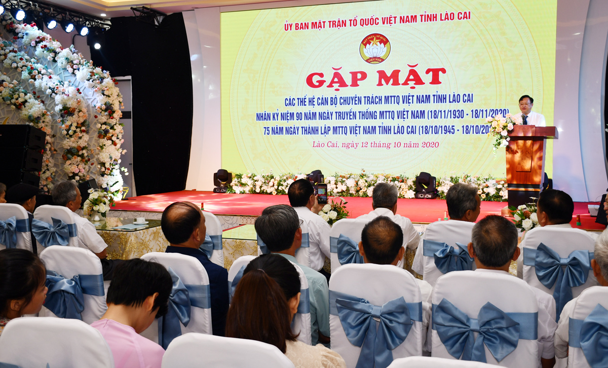 Nhân kỷ niệm 90 năm ngày truyền thống MTTQ Việt Nam (18/11/1930-18/11/2020) và 75 năm ngày thành lập MTTQ Việt Nam tỉnh Lào Cai (18/10/1945-18/10/2020), chiều 12/10, Ủy ban MTTQ Việt Nam tỉnh tổ chức gặp mặt các thế hệ lãnh đạo, cán bộ MTTQ Việt Nam tỉnh Lào Cai qua các thời kỳ.