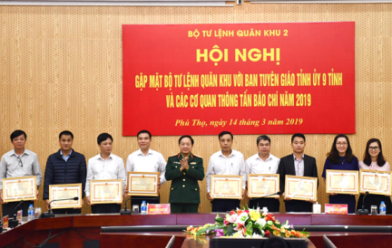 Sáng 14/3, tại thành phố Việt Trì, tỉnh Phú Thọ, Bộ Tư lệnh Quân khu 2 tổ chức Hội nghị gặp mặt báo chí nhân dịp Xuân Kỷ Hợi 2019 với Ban Tuyên giáo Tỉnh ủy và các cơ quan thông tấn, báo chí 9 tỉnh trên địa bàn.