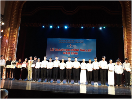 Đoàn học sinh có thành tích xuất sắc năm học 2017-2018 của trường THPT Chuyên Lào Cai vừa tham gia nhận học bổng Odon Vallet năm 2018, mỗi suất trị giá 10 triệu đồng, tại thành phố Hà Nội.