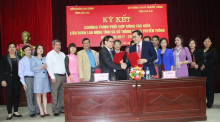 Chiều 05/12, Liên Đoàn lao động tỉnh và Sở Thông tin và Truyền thông tổ chức ký kết chương trình phối hợp công tác trong phong trào công nhân, viên chức, lao động và hoạt động Công đoàn tỉnh Lào Cai giai đoạn 2017 – 2022.
