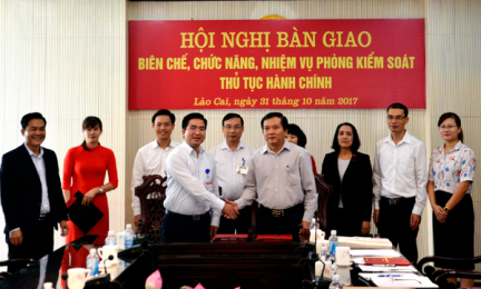 Sáng 31/10, Văn phòng UBND tỉnh, Sở Tư pháp, Sở Nội vụ phối hợp tổ chức Hội nghị bàn giao biên chế, chức năng, nhiệm vụ Phòng Kiểm soát thủ tục hành chính.