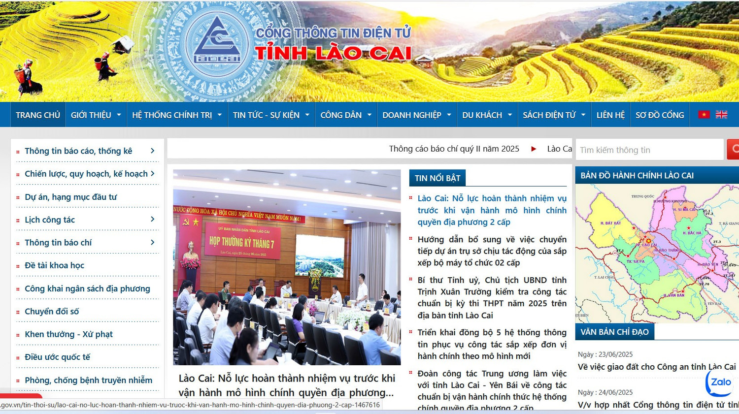 UBND tỉnh Lào Cai đề nghị Tập đoàn Tập đoàn Viễn thông Việt Nam triển khai các điều kiện hạ tầng kỹ thuật cho việc hợp nhất 2 Cổng thông tin điện tử (TTĐT) Lào Cai và Yên Bái theo tiến độ vận hành chính quyền địa phương 2 cấp và 99 Cổng TTĐT thành phần cấp xã từ ngày 1.7.2025.