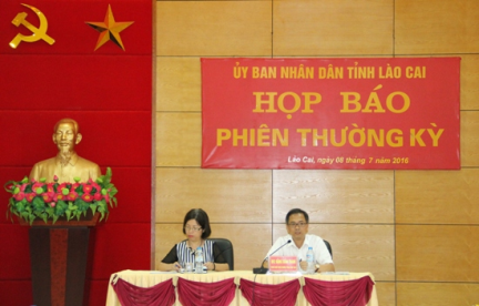 Chiều 8/7, UBND tỉnh Lào Cai tổ chức họp báo thường kỳ quý II/2016, thông báo tình hình thực hiện nhiệm vụ phát triển kinh tế - xã hội 6 tháng đầu năm, triển khai nhiệm vụ trọng tâm tháng 7 và 6 tháng cuối năm 2016.