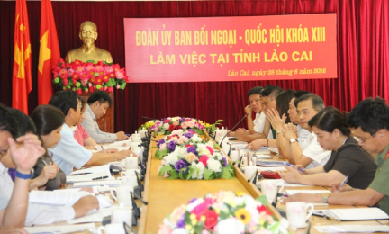 Sáng ngày 28/6, Đoàn công tác của Uỷ ban Đối ngoại Quốc hội khoá XIV do đồng chí Trần Văn Hằng, Uỷ viên Uỷ ban Thường vụ Quốc hội, Chủ nhiệm Uỷ ban Đối ngoại làm Trưởng đoàn đã có buổi làm việc với tỉnh Lào Cai. Tiếp và làm việc với đoàn công tác có các đồng chí: Đặng Xuân Thanh, Phó Chủ tịch UBND tỉnh; Giàng Mạnh Nhà, Phó Chủ tịch HĐND tỉnh và lãnh đạo các sở, ban, ngành liên quan.