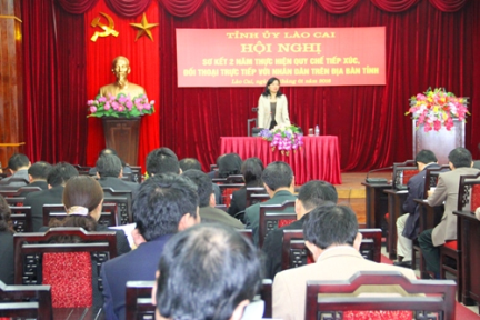 Sáng 07/011, Tỉnh ủy Lào Cai đã tổ chức Hội nghị sơ kết 02 năm triển khai thực hiện Quy chế tiếp xúc, đối thoại trực tiếp với nhân dân. Đồng chí Hà Thị Nga - Phó Bí thư Thường trực Tỉnh ủy chủ trì hội nghị.