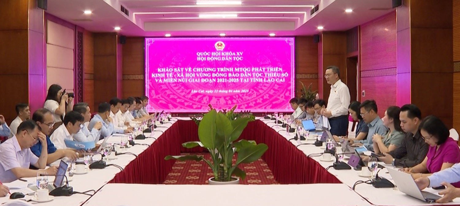 Sáng 22/4, Đoàn khảo sát Hội đồng Dân tộc của Quốc hội do đồng chí Quàng Văn Hương, Phó Chủ tịch Hội đồng Dân tộc làm Trưởng đoàn đã có buổi làm việc với UBND tỉnh Lào Cai về tình hình thực hiện Chương trình mục tiêu quốc gia phát triển kinh tế - xã hội vùng đồng bào dân tộc thiểu số và miền núi giai đoạn 2021 - 2030, giai đoạn I: 2021 - 2025 (Chương trình 1719).