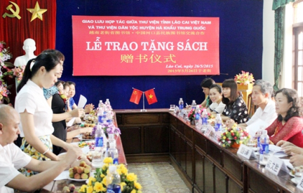 Sáng 26/5, tại Lào Cai đã diễn ra Lễ trao tặng 200 bản sách giữa Thư viện tỉnh Lào Cai và Thư viện dân tộc huyện Hà Khẩu, tỉnh Vân Nam, Trung Quốc.