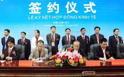 Sáng ngày (8/11) tại Trung tâm thương mại quốc tế Trung Quốc - ASEAN (Hà Khẩu, Vân Nam, Trung Quốc), Ban tổ chức hội chợ đã tổ chức lễ ký kết hợp đồng kinh tế giữa các doanh nghiệp của Việt Nam và Trung Quốc.