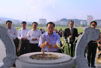 Chiều ngày 11/11, đoàn Đại biểu các dân tộc thiểu số tỉnh đã đến dâng hương tại Nhà bia tưởng niệm Chủ tịch Hồ Chí Minh và đặt vòng hoa tại Đài tưởng niệm các anh hùng liệt sỹ tỉnh Lào Cai.