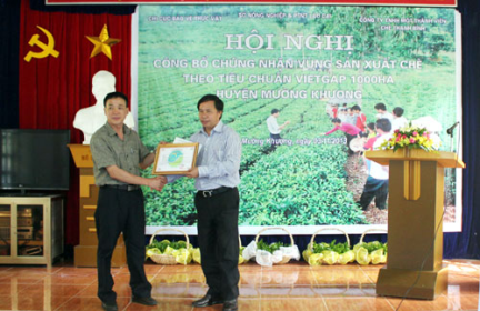 Ngày 3/11, tại xã Lùng Vai, huyện Mường Khương, Sở Nông nghiệp và Phát triển nông thôn đã tổ chức Hội nghị công bố Chứng nhận vùng sản xuất chè theo tiêu chuẩn VietGAP cho 1.000 ha chè hàng hóa của huyện Mường Khương.