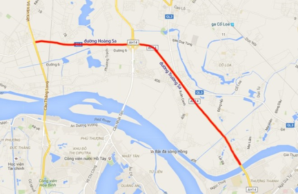 Đường Hoàng Sa được đặt cho đoạn đường từ ngã tư giao cắt với đường Võ Văn Kiệt đến ngã tư chân cầu vượt đường Võ Nguyên Giáp, dài 4,8 km, rộng 68 m. Đường Trường Sa được đặt cho đoạn từ ngã tư giao cắt cầu vượt Võ Nguyên Giáp đến chân cầu Đông Trù (huyện Đông Anh), dài 7,3 km, rộng 68 m.