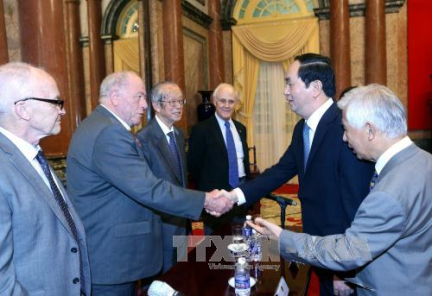 Chiều 9/7, tại Phủ Chủ tịch, Chủ tịch nước Trần Đại Quang đã có buổi gặp gỡ đoàn các giáo sư đoạt giải Nobel và các nhà khoa học quốc tế tham dự Hội nghị quốc tế “Khoa học cơ bản và xã hội”.