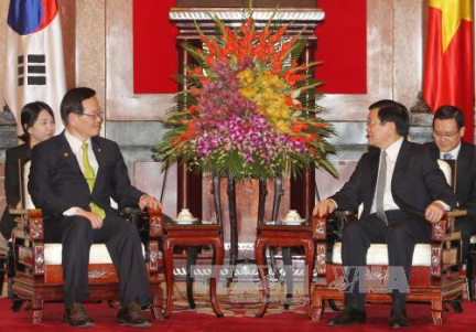 Chiều 19/3, tại Phủ Chủ tịch, Chủ tịch nước Trương Tấn Sang đã tiếp thân mật Chủ tịch Quốc hội Hàn Quốc Chung Ui-Hwa (Châng Ưi Hoa) đang có chuyến thăm hữu nghị chính thức nước ta.