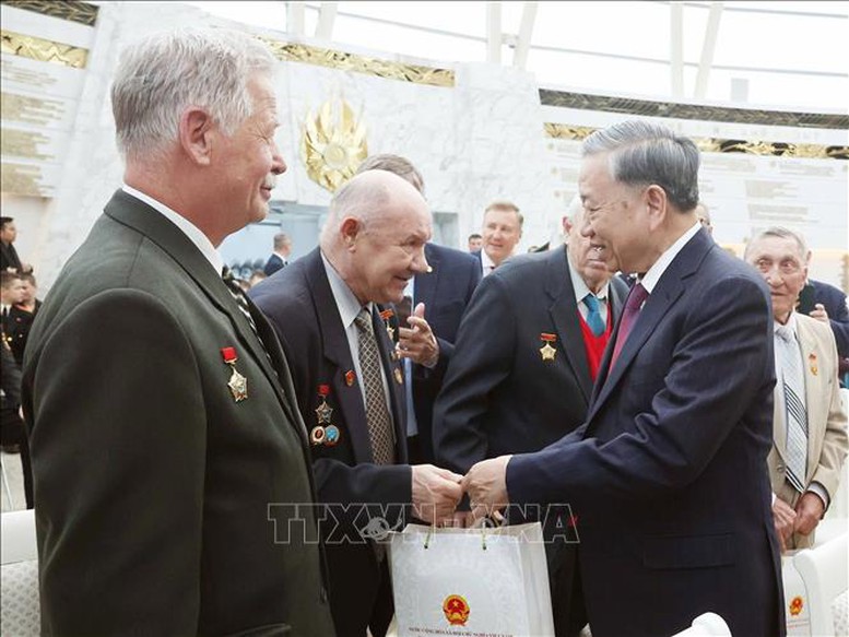 Trong khuôn khổ chuyến thăm cấp Nhà nước Cộng hòa Belarus từ 11-12/5/2025, chiều 11/5 (giờ địa phương), Tổng Bí thư Tô Lâm cùng Đoàn đại biểu cấp cao Việt Nam đã có cuộc gặp Hội hữu nghị và giao lưu văn hóa với nước ngoài của Belarus, Hội hữu nghị Belarus-Việt Nam và các cựu chuyên gia Belarus đã từng giúp đỡ Việt Nam.