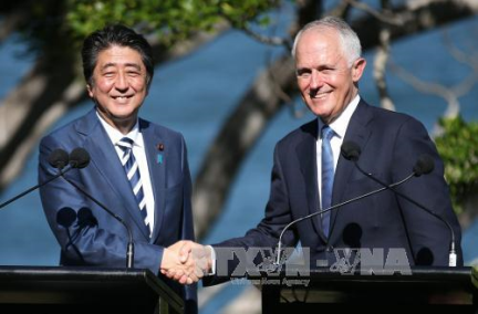 Ngày 14/1, Thủ tướng Australia Malcolm Turnbull (Man-côm Tơn-bun) và Thủ tướng Nhật Bản Shinzo Abe (Sin-dô A-bê) đang ở thăm thành phố Sydney (Xít-ni) đã cam kết theo đuổi Hiệp định Đối tác xuyên Thái Bình Dương (TPP) và tăng cường quan hệ quốc phòng.