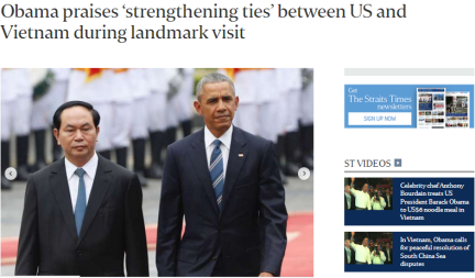 Chuyến thăm lịch sử của Tổng thống Hoa Kỳ Barack Obama (Ba-rắc Ô-ba-ma) đến Việt Nam tiếp tục thu hút sự quan tâm đặc biệt của các phương tiện truyền thông khu vực và quốc tế.