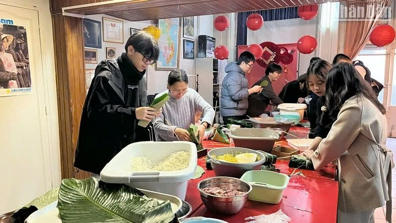 Đến hẹn lại lên, cứ mỗi dịp Tết đến Xuân về, các thành viên của Chi hội thanh niên và sinh viên Việt Nam tại thành phố Lyon (miền trung nước Pháp) lại hân hoan trong không khí tưng bừng cùng nhau chuẩn bị những bánh chưng, bánh tét đậm vị quê hương.