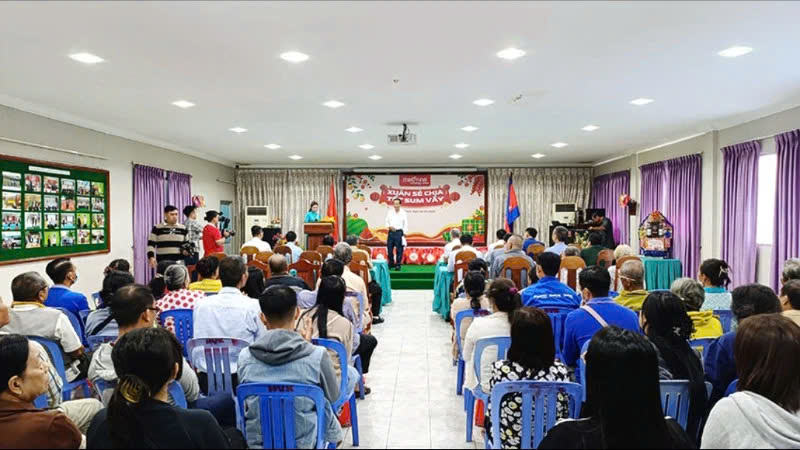 Sáng 18/1, Công ty Viettel Cambodia (Metfone) phối hợp Đại sứ quán Việt Nam và Hội Khmer-Việt Nam tại Campuchia tổ chức chương trình "Xuân sẻ chia-Tết sum vầy”, trao tặng quà Tết tổng trị giá 22.655 USD cho các gia đình người gốc Việt Nam có hoàn cảnh khó khăn.