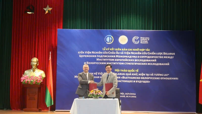 Chiều 26/11, tại Hà Nội, Viện Nghiên cứu châu Âu thuộc Viện Hàn lâm Khoa học xã hội Việt Nam và Viện Nghiên cứu Chiến lược Belarus ký kết Biên bản ghi nhớ về hợp tác và tổ chức hội thảo quốc tế “Quan hệ Việt Nam-Belarus: quá khứ, hiện tại và tương lai”.