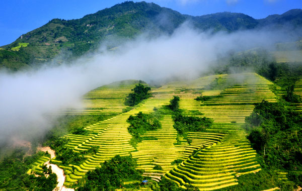 Thu sang là lúc các thửa ruộng bậc thang ở Y Tý (Bát Xát, Lào Cai) lại rực vàng sắc nắng. Những bông lúa vàng trĩu trải khắp các ruộng bậc thang, tạo nên khung cảnh thơ mộng cho mảnh đất núi rừng nơi đây. Đó cũng là lời chào gọi du khách khắp nơi tìm về thưởng lãm Y Tý mùa vàng.