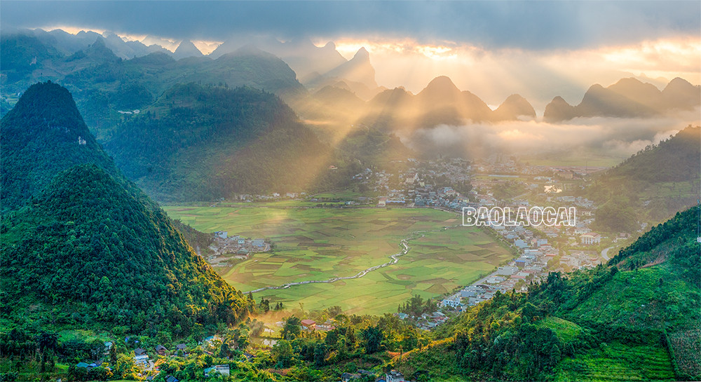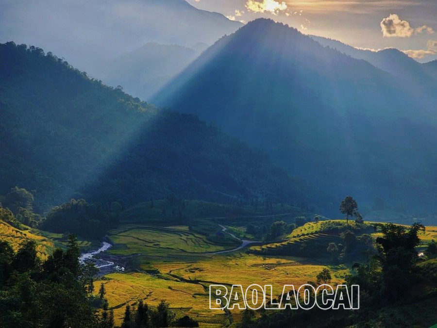 Thị trấn Mường Khương cuối tháng 8 như được nhuộm vàng bởi những cánh đồng lúa chín chuẩn bị vào vụ thu hoạch.