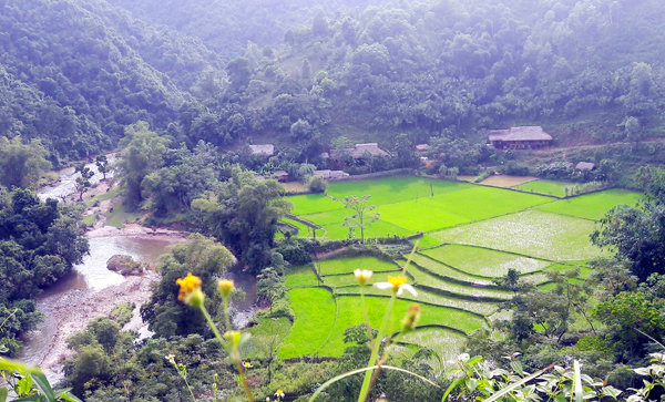 Tháng 5, giữa cái nắng như lửa đốt của mùa hè, chúng tôi về xã Tân Tiến, huyện Bảo Yên. Cách xa trung tâm huyện gần 50 km, Tân Tiến là xã xa nhất, cũng là vùng đất còn khá hoang sơ, nhìn đâu cũng thấy đồi núi trập trùng. Đặc biệt, mấy người bạn tôi bảo, Tân Tiến có bản Tày Thác Xa nổi tiếng với nhà sàn, đồi cọ bình yên, nhất là thác Xa, đẹp nhất vùng này.