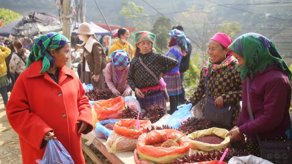 Đến phiên chợ Cán Cấu cuối cùng trong năm, đồng bào vùng cao xuống chợ như đi hội, tấp nập người mua kẻ bán.