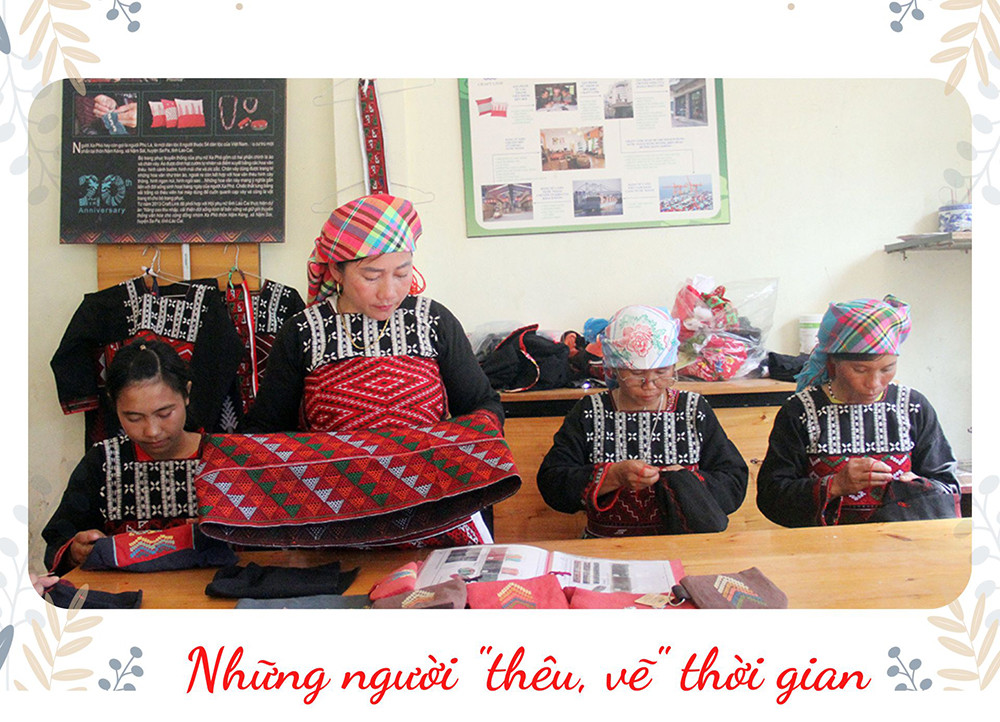 3 giờ chiều, nắng vẫn gay gắt. Nắng rót mật xuống những lòng thung, nắng hòa vào mái tóc, nắng len lỏi vào đường kim của những người phụ nữ Xá Phó, xã Liên Minh, thị xã Sa Pa đang cặm cụi thêu váy áo bên hiên nhà. Trong khung cảnh yên bình chốn vùng cao, giữa rôm rả tiếng nói cười, tôi như thấy các chị, các mẹ “thêu, vẽ” thời gian trên từng tấm vải bằng sợi nắng xuyên kim, lặng lẽ kể những câu chuyện về đất và người bằng muôn đường kim, mũi chỉ.