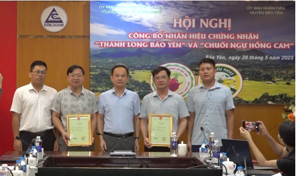 Ngày 28/5, huyện Bảo Yên phối hợp với Sở Khoa học và Công nghệ tỉnh Lào Cai tổ chức công bố nhãn hiệu chứng nhận “Thanh long Bảo Yên” và “Chuối ngự Hồng Cam”.