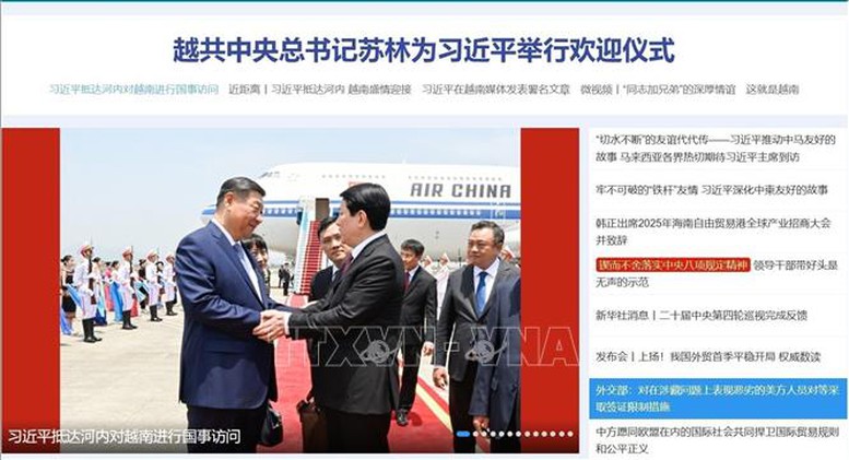 Truyền thông chính thống Trung Quốc như Tân Hoa xã, Nhân dân nhật báo, Đài truyền hình Trung ương Trung Quốc (CCTV), Thời báo Hoàn cầu… đã đồng loạt đưa tin đậm nét về chuyến thăm cấp Nhà nước đến Việt Nam của Tổng Bí thư, Chủ tịch nước Trung Quốc Tập Cận Bình, cho rằng chuyến thăm sẽ viết nên một chương mới và vạch ra lộ trình mới cho quan hệ hai nước.