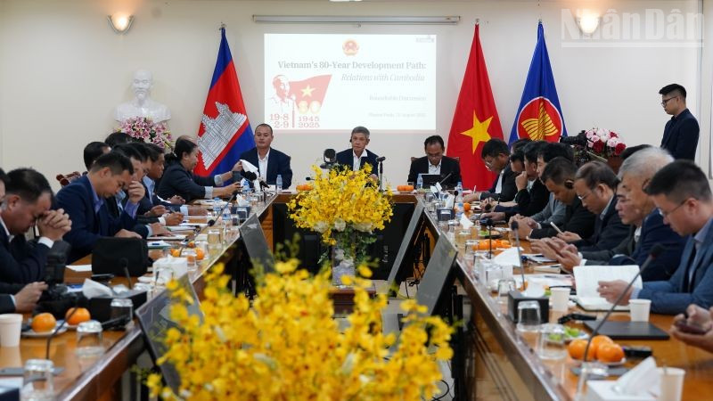 Các diễn giả khẳng định kỷ niệm 80 năm Cách mạng Tháng Tám thành công và Quốc khánh 2/9 không chỉ là dấu mốc quan trọng trong lịch sử Việt Nam, mà còn là dịp để Campuchia ôn lại quá khứ, bởi vận mệnh hai dân tộc gắn bó mật thiết, được xây dựng trên nền tảng những hy sinh chung, sự tin cậy và tình hữu nghị bền chặt.