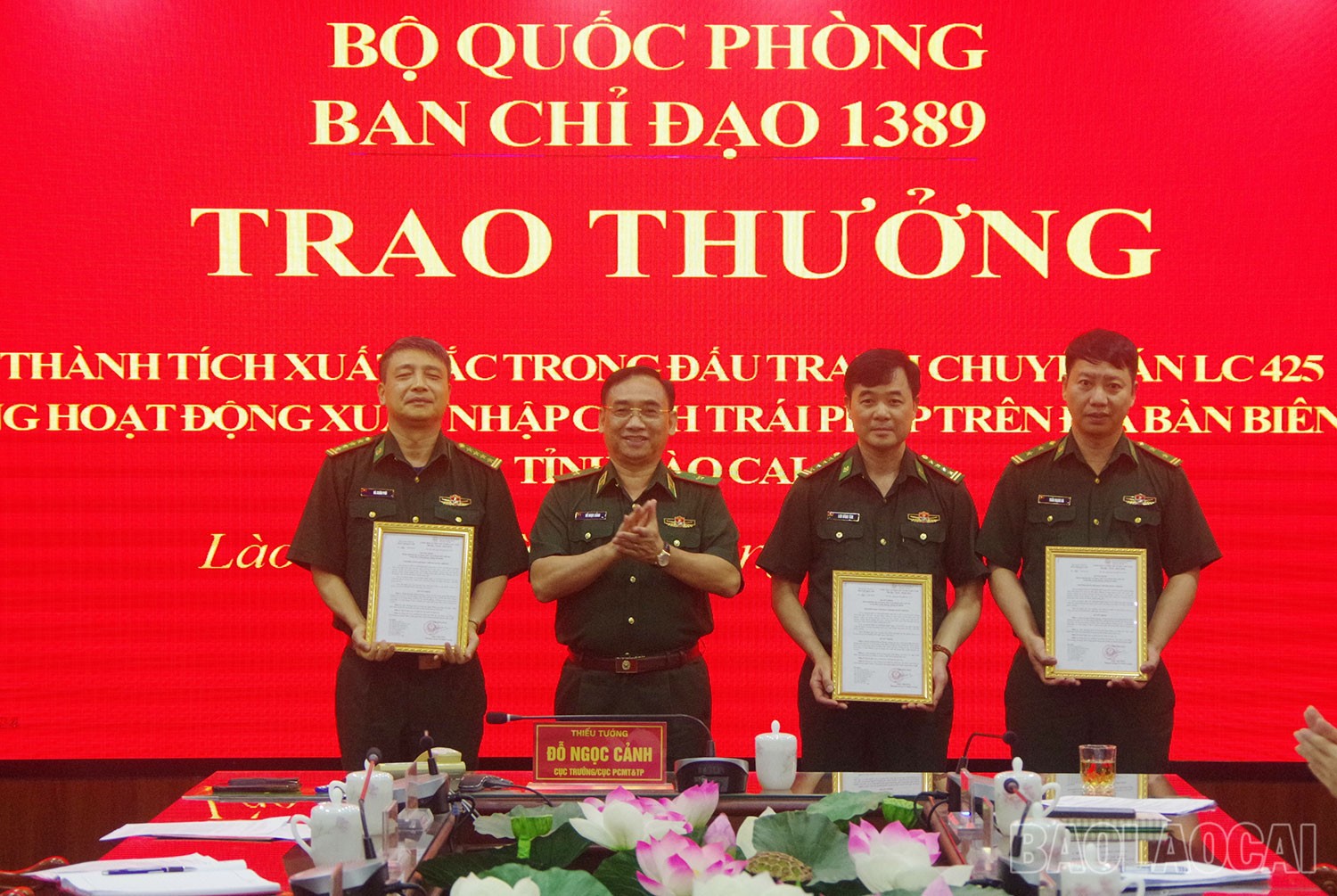 Ngày 20/5, tại Bộ Chỉ huy Bộ đội Biên phòng tỉnh Lào cai, Ban Chỉ đạo 1389 Bộ Quốc phòng, Bộ Tư lệnh Bộ đội Biên phòng tổ chức trao thưởng cho lực lượng đấu tranh thành công Chuyên án LC425 chống xuất, nhập cảnh trái phép qua biên giới tỉnh Lào Cai.
